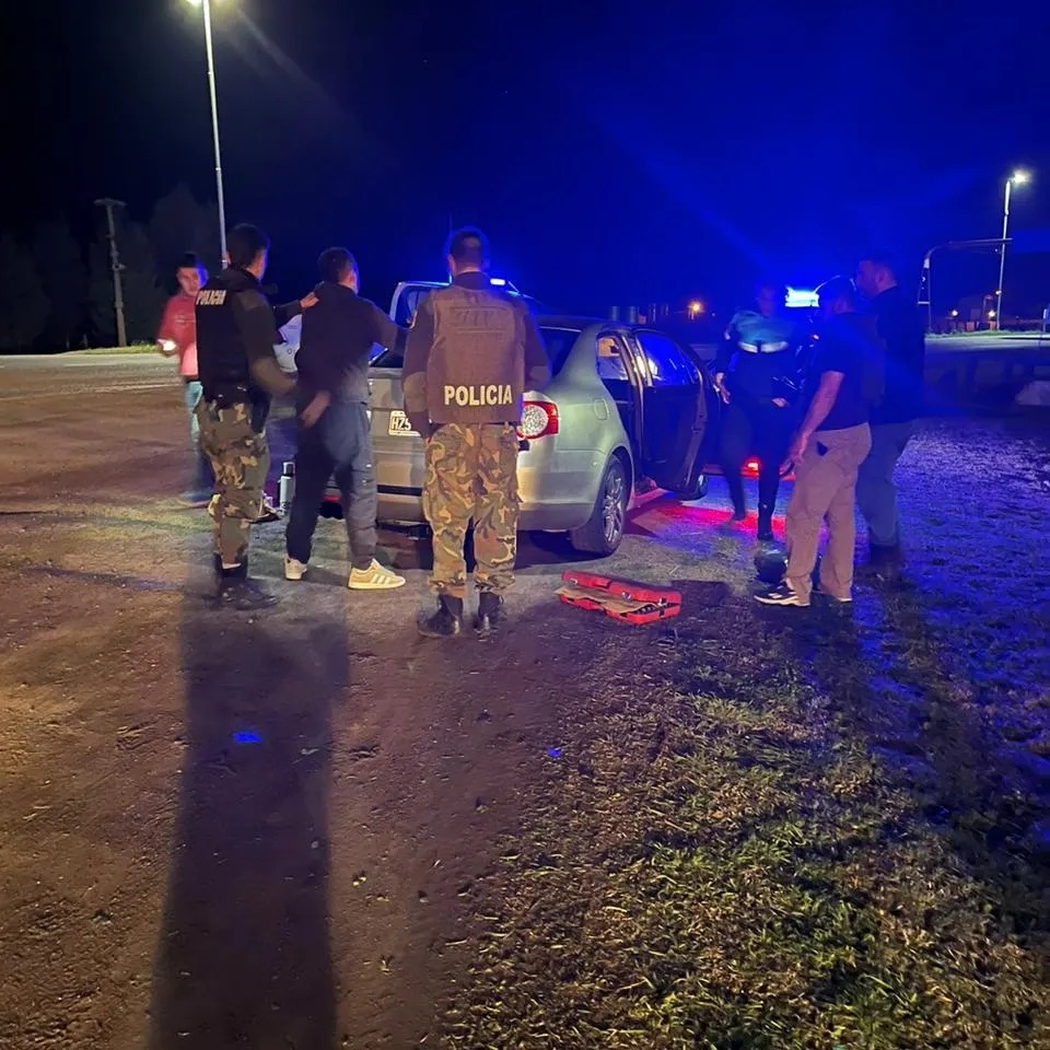Alertado el sistema 911 de la situación, se inicia operativo denominado cerrojo , donde personal de la comisaria de Suipacha, a la altura del kilómetro 120 logra cortar el paso de la motocicleta que era perseguida de cerca por el personal policial de Gowland, aprehendiendo a Gonzalez Sergio Sebastián, de 27 años domiciliado en la ciudad de Pehuajo, en tanto el vehículo de apoyo es detenido minutos más tarde por personal del Comando de Prevencion Rural y de Comisaria , apostados en ruta 5 y acceso Padre Brady de Suipacha, aprehendiendo a su conductor que resulta ser Possamai Cordoba Federico Nicolas de 29 años también domiciliado en Pehuajo a quien se le incauta importante cantidad de dinero en efectivo y telefonía celular.