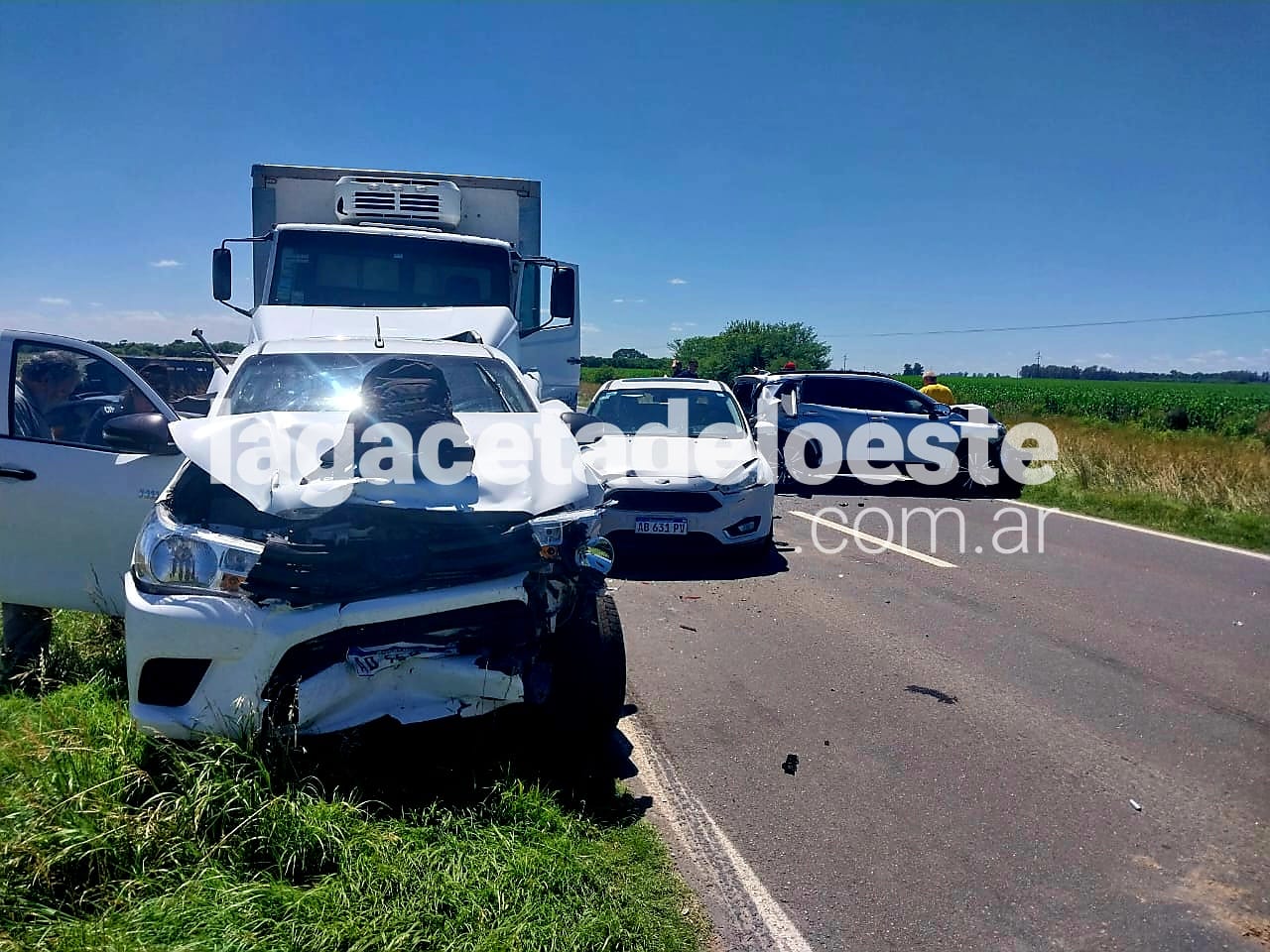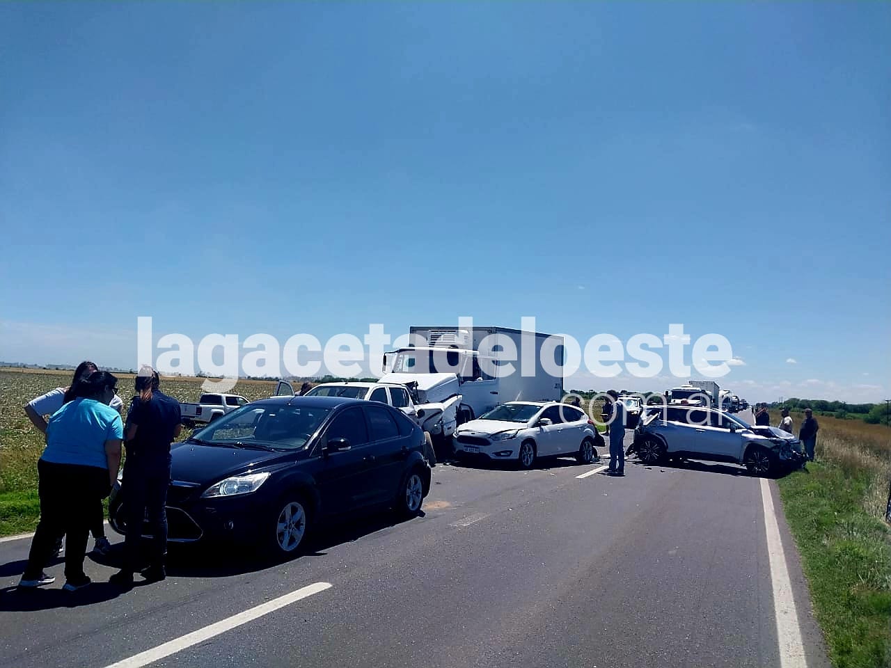 En Ruta Nacional 5 a la altura del kilómetro 149, se produce una colisión en cadena por alcance.