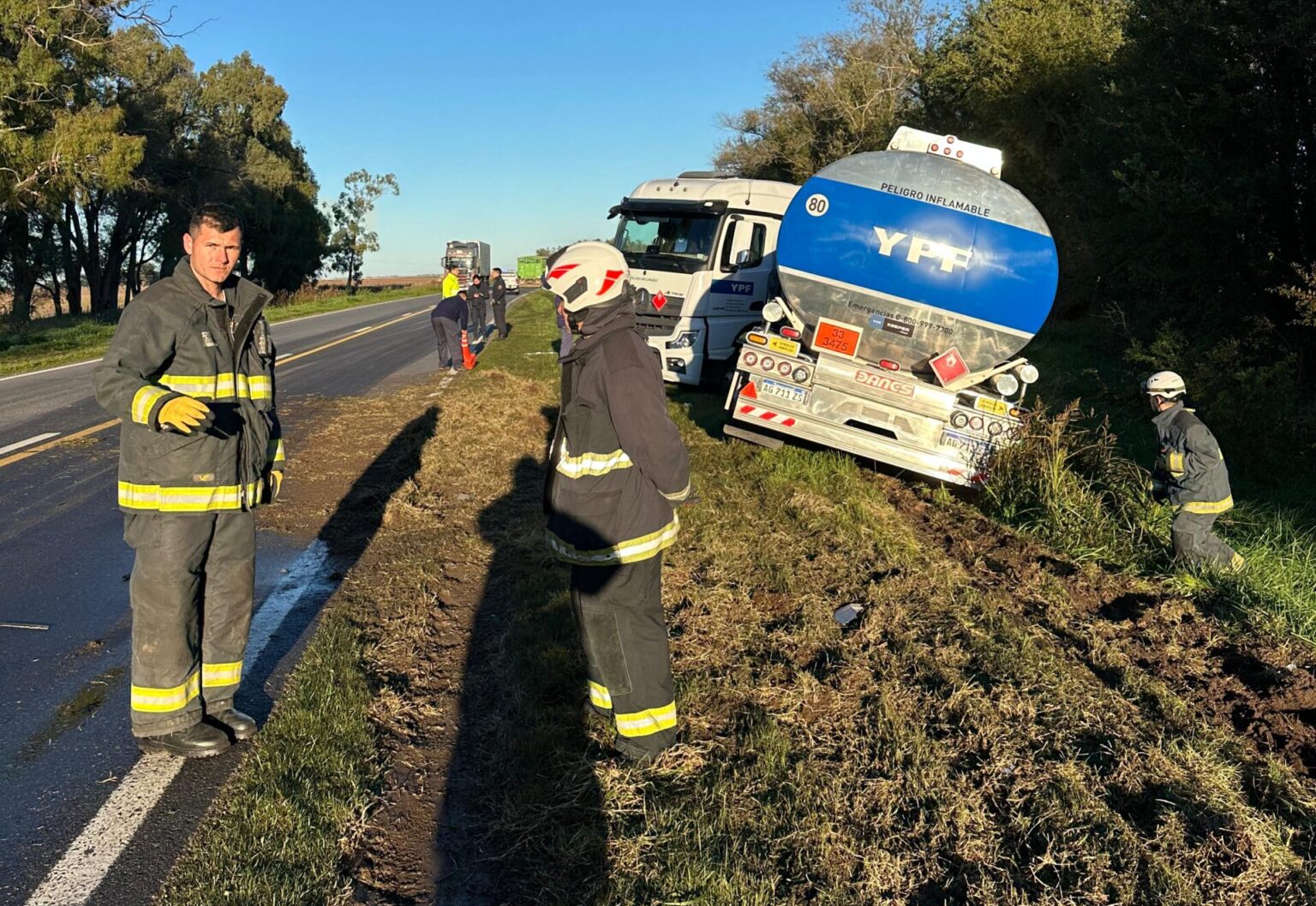 Este domingo por la mañana, un siniestro vial impactante ocurrió en el kilómetro 290 de la Ruta Nacional 5, cerca de la bajada a Cambaceres, en jurisdicción de 9 de Julio. Un camión cisterna de YPF, perteneciente a Logística Diesel, y un automóvil Renault 19 Sedán colisionaron a las 8:25 horas.