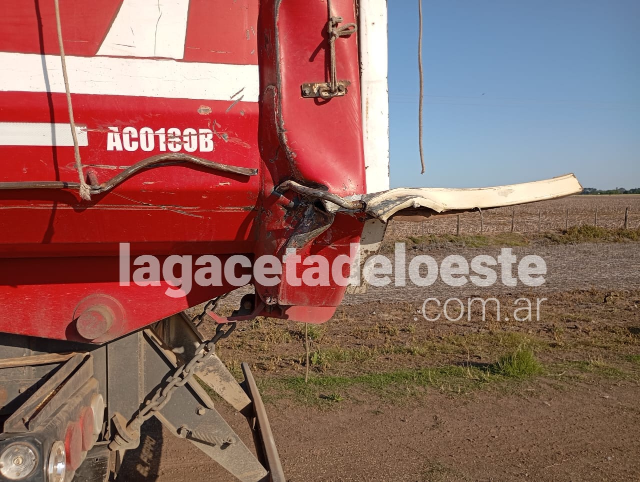 Por razones que se tratan de establecer, dos camiones se rozaron sobre la ruta provincial 51, antes de la rotonda con ruta 30. Se trata de un Mercedes Benz LS 1634 patente FWK788 con semirremolque batea dominio AC018=B para carga que era conducido por el chivilcoyano Julio César Lorenzón, por la mano contraria circulaba un tractor Mercedes Benz L1634 dominio IGV984 y acoplado volcable patente AE774WB guiado por Juan Ricardo Javier Vega oriundo de Santa Fe. Ambos conductores resultaron ilesos, solo se registraron daños materiales por lo que intercambiaron documentación y siguieron hacia su destino. La ruta fue liberada rápidamente.