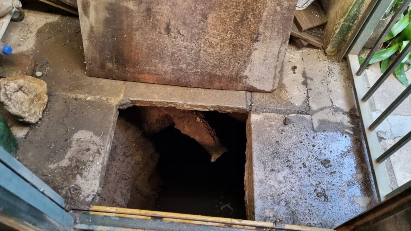 El piso de hormigón cedió y la mujer cayó a un pozo ciego de siete metros de profundidad.