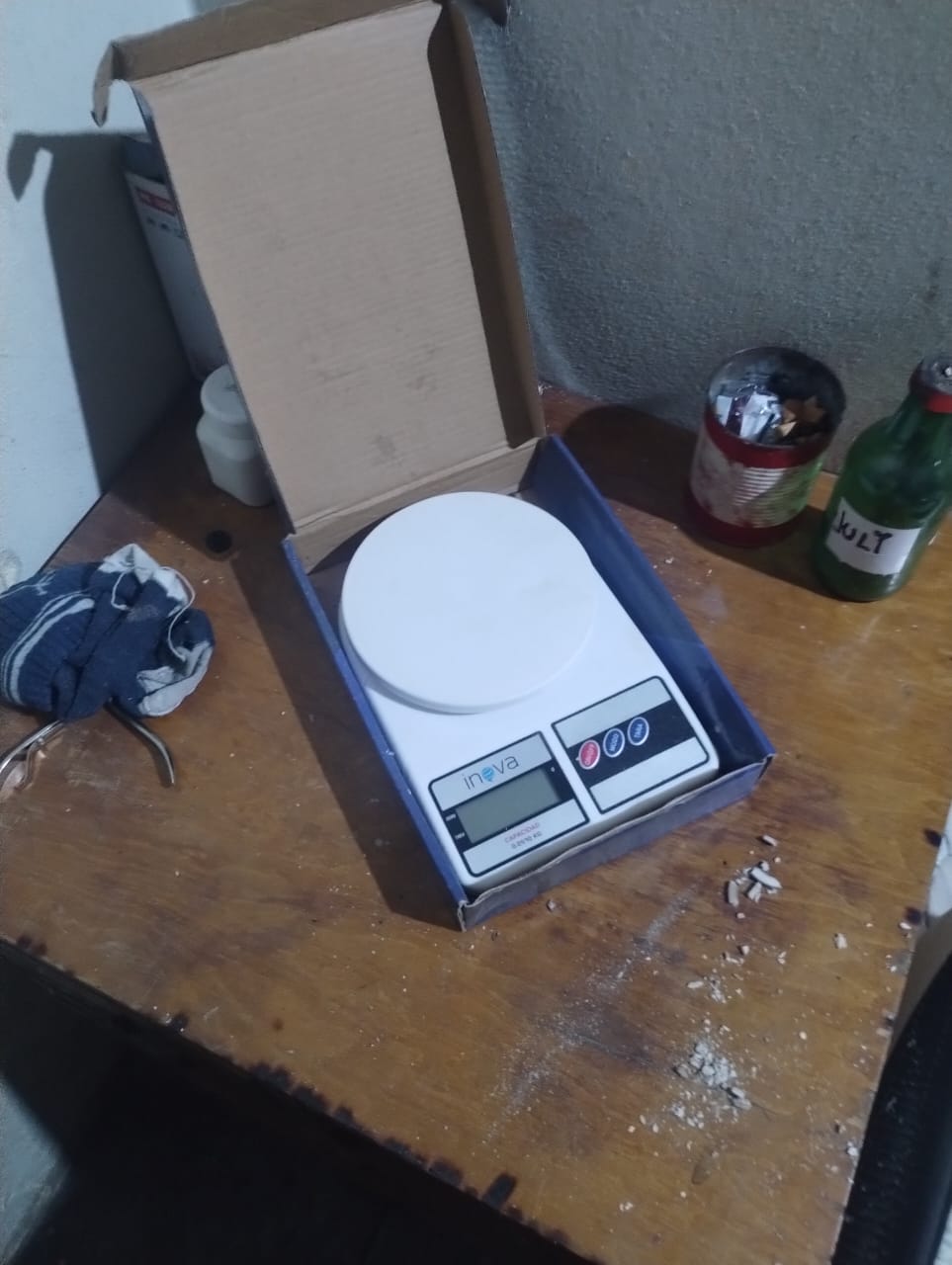 Seguidamente se efectuó el registro de las demás dependencias internas de la vivienda donde se procedió al secuestro de una bolsa conteniendo en su interior siete envoltorios con CLORHIDRATO DE COCAÍNA, dos balanzas de precisión y elemento de estiramiento (bicarbonato de sodio). Ante ello se efectuó test orientativo respecto a la sustancia estupefacientes secuestrada arrojando resultado positivo para COCAÍNA, para posterior realizar pesajes dicha sustancia, obteniendo un guarismo de 10 gramos de CLORHIDRATO DE COCAÍNA.