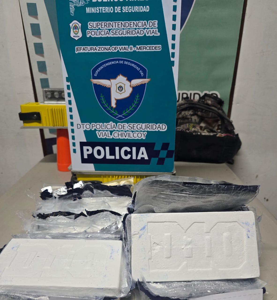 En el marco de un operativo conjunto de control vehicular, la Policía Vial de Chivilcoy llevó adelante un procedimiento que culminó con el secuestro de más de tres kilogramos de clorhidrato de cocaína de alta pureza y la detención de dos personas por infracción a la Ley 23.737 de estupefacientes.