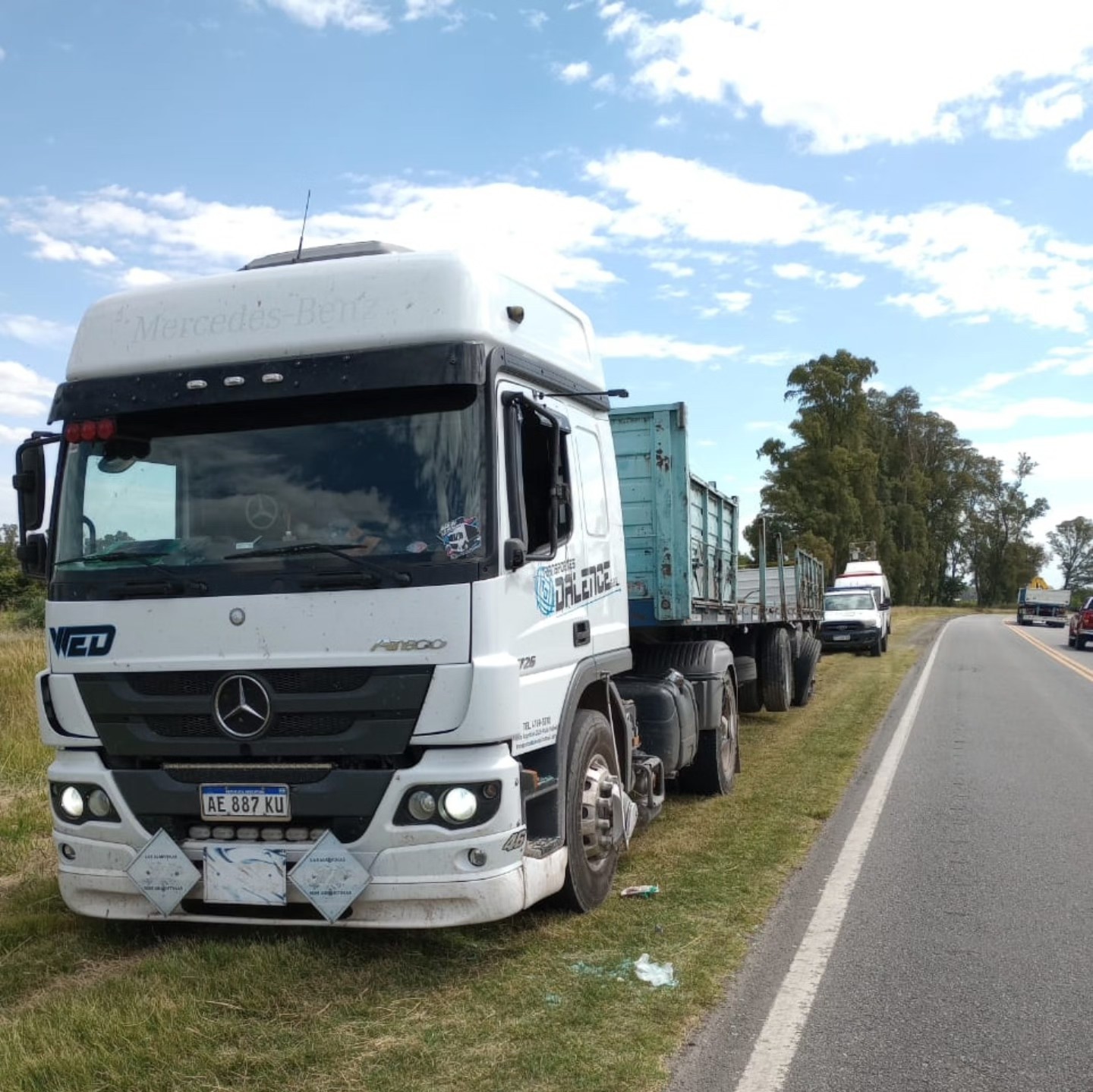 El siniestro ocurrió en el sector de curva, que se halla a la altura del kilómetro 109, cuando un camión Volkswagen 17280, color blanco con acoplado cerealero conducido por Claudio Enrique Tozzelli, de 40 años, domiciliado a Alberti, quien viajaba circulando en sentido Mercedes-Suipacha y al llegar a la mencionada curva por razones que se desconocen con la parte delantera izquierda del rodado impacta con la parte lateral izquierda de un semirremolque que remolcaba un camión Mercedes Benz Atego , que circulaba en sentido contrario, es decir desde Suipacha hacia Mercedes conducido por Sergio Rubén González, de 43 años , domiciliado en Tres de Febrero.