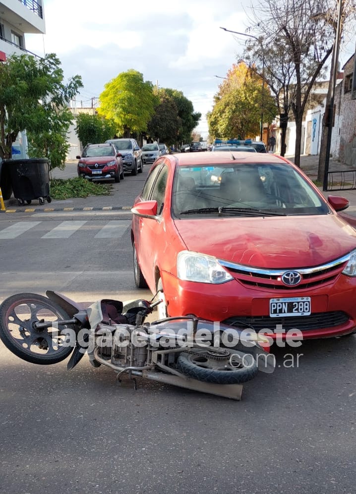 El auto, Toyota Etios patente PPN228 conducido por Diego Santucci, en la moto 110 c.c. circulaba María Belen García, ambos intercambiaron documentación.