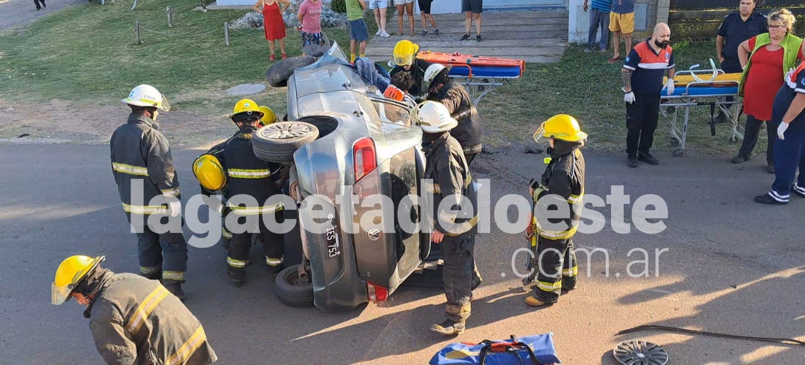 Por razones que se tratan de establecer, volcó un Volkswagen Gol Trend patente IES 753, quedando sobre el lateral derecho con tres atrapados en su interior.