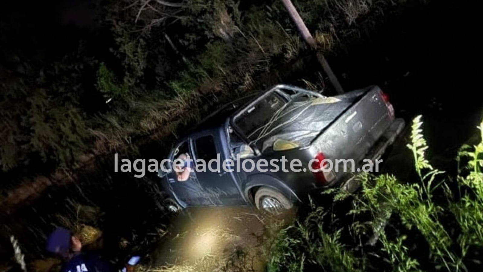 Un siniestro vial sin heridos se registró este miércoles sobre la Ruta Nacional N°5, en dirección a Gorostiaga, cuando una camioneta Toyota Hilux despistó y terminó en una zanja con agua a pocos metros del trazado.