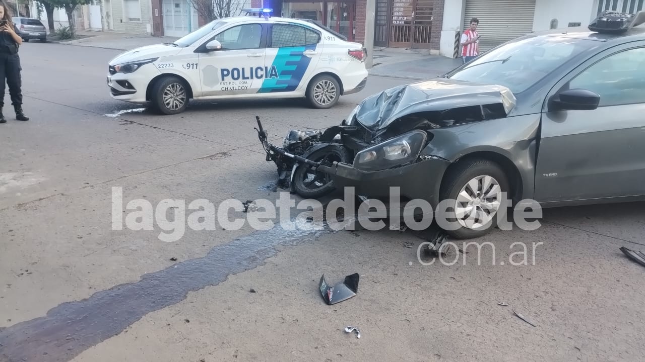 Siendo aproximadamente las 19 horas del miércoles, se produjo una violenta colisión en Avenida 22 de Octubre entre calles Chacabuco y Las Heras entre una moto y un auto.