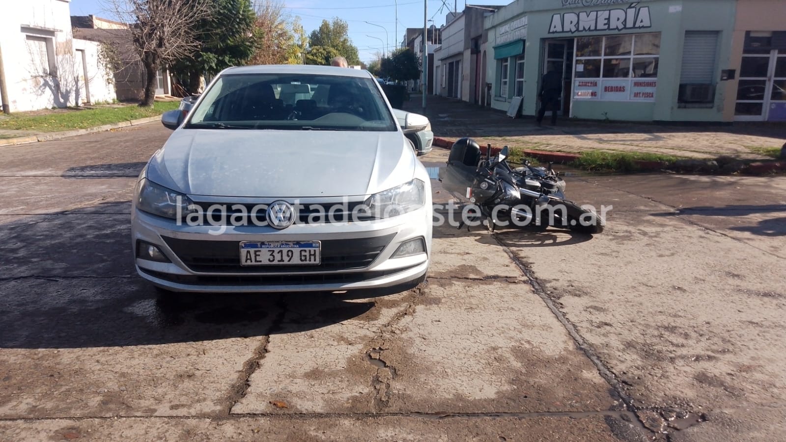 Minutos antes de las 11 de la mañana, se produjo una violenta colisión entre un automóvil y una moto en la intersección de la Avenida Avellaneda y calle 25 de Mayo.