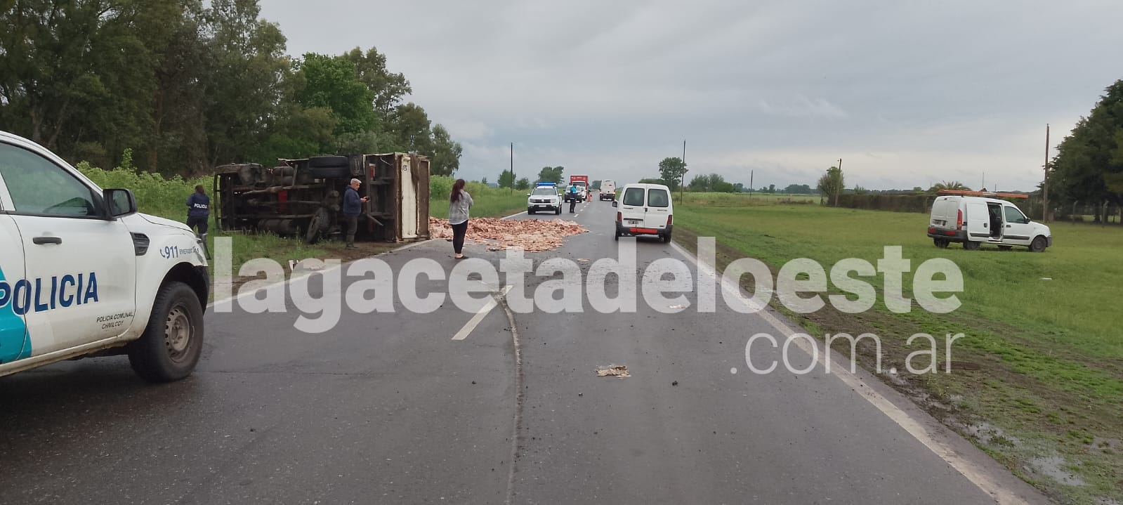 VUELCO DE UN CAMIÓN EN LA RUTA 30: UN HERIDO GRAVE Y DOS LEVES TRAS PERDER LA RUEDA TRASERA